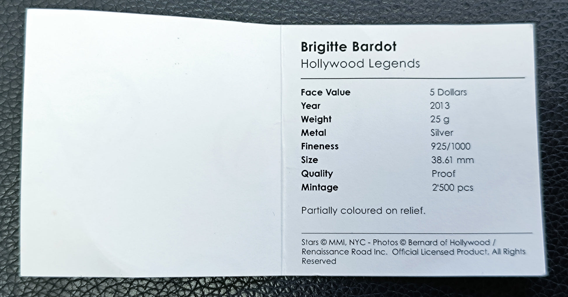 Une pièce originale mêlant numismatique et culture cinématographique, idéale pour les collectionneurs de monnaies modernes, de médailles thématiques ou les admirateurs de Brigitte Bardot.