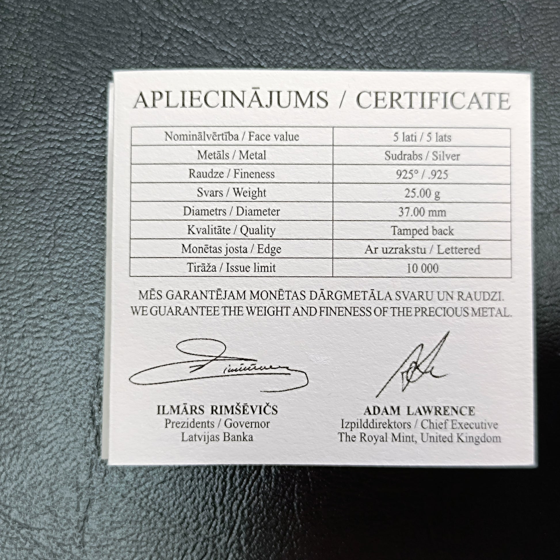 Lettonie 5 Lati 2012 Argent 25 gr Coffret