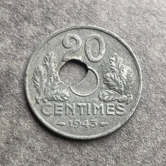 Falla 20 Céntimos TIPO 20 1943 zinc 3,11 gr Agujero descentrado