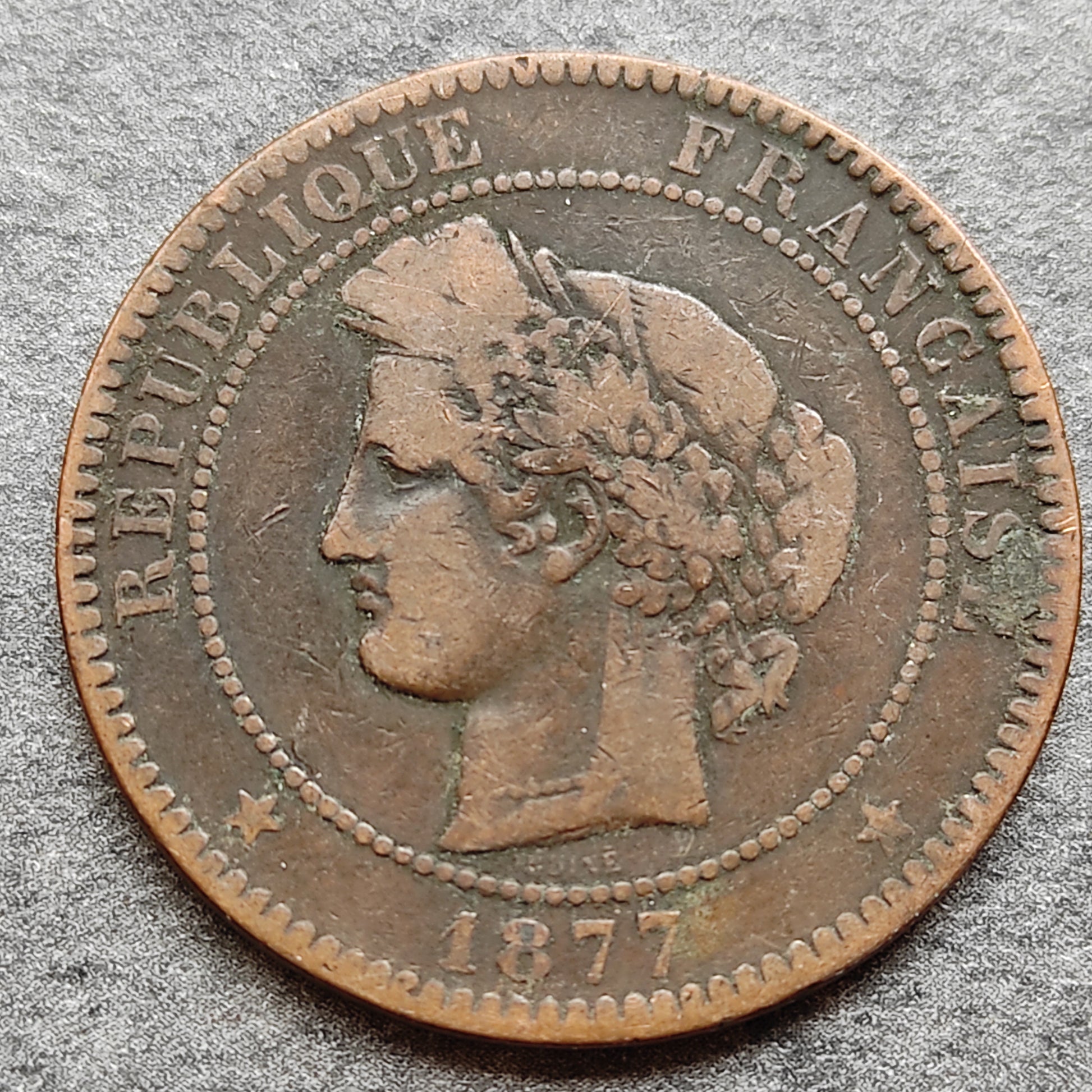 Ceres 10 Céntimos 1877 K Burdeos 9,73 gr