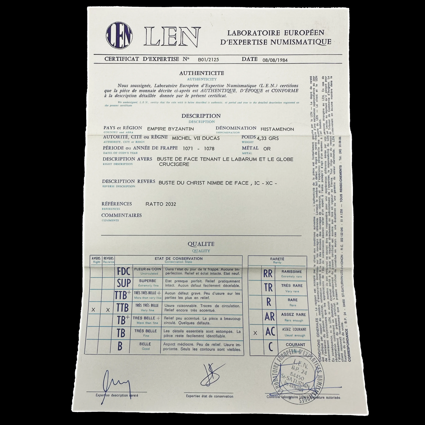 Morrisson, n°1sq. - Sear, n°1868 - Ratto, n°2032