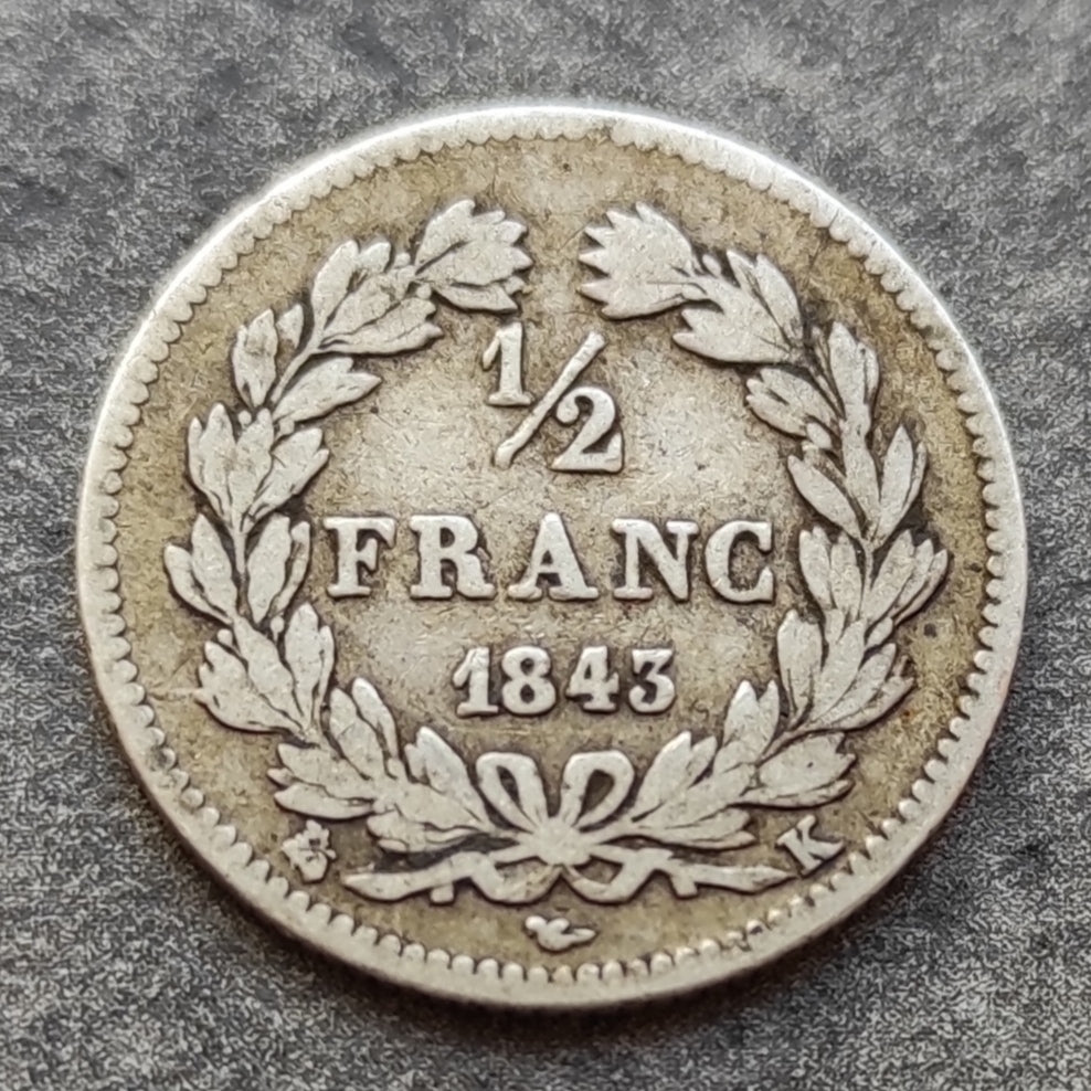 Luis Felipe (1830-1848) 1/2 Franco 1843 K Burdeos Plata