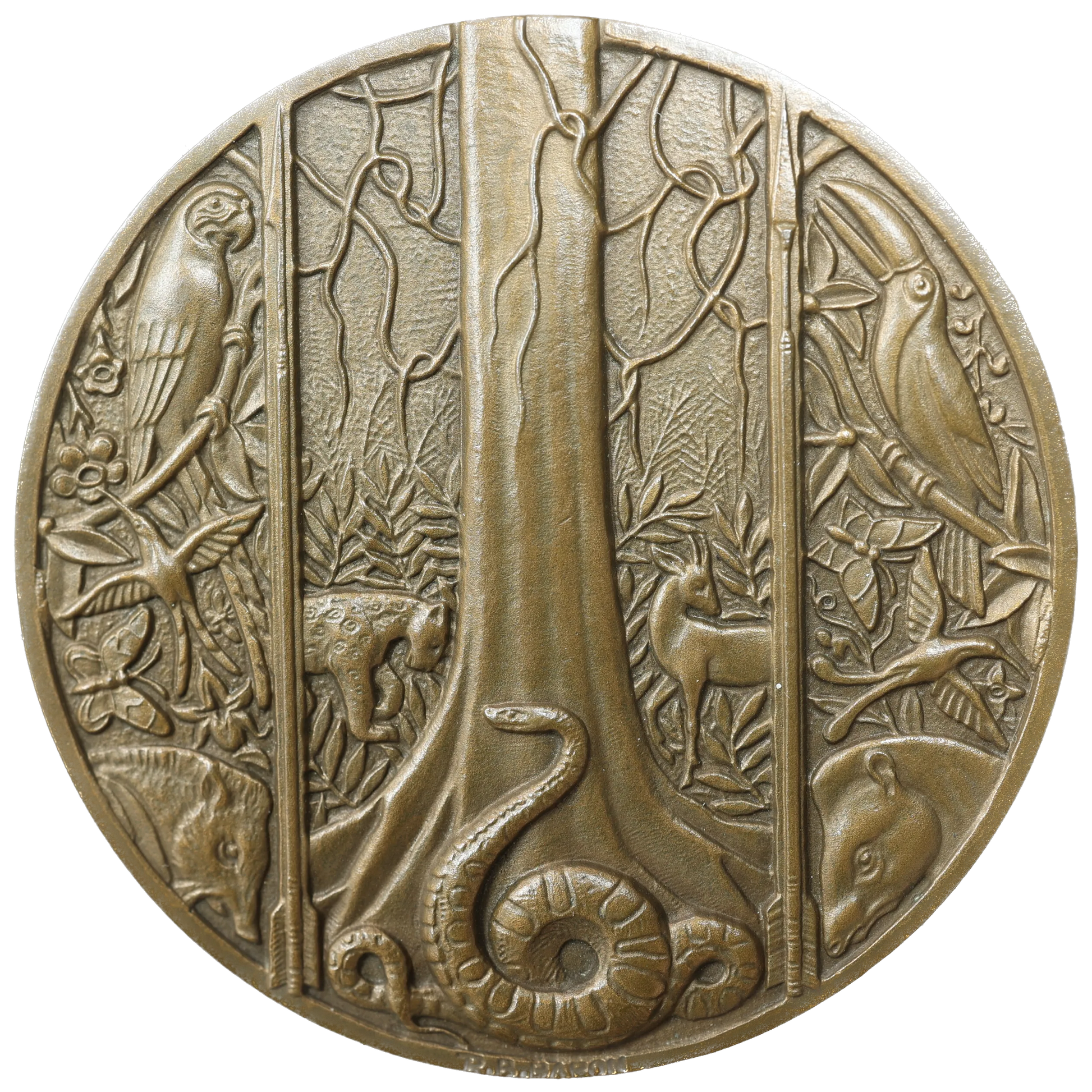 Médaille Guyane Territoire de l'Inini - Forêt équatoriale et animaux sauvages 1951 Par RB. BARON - Bronze - 112.64 gr
