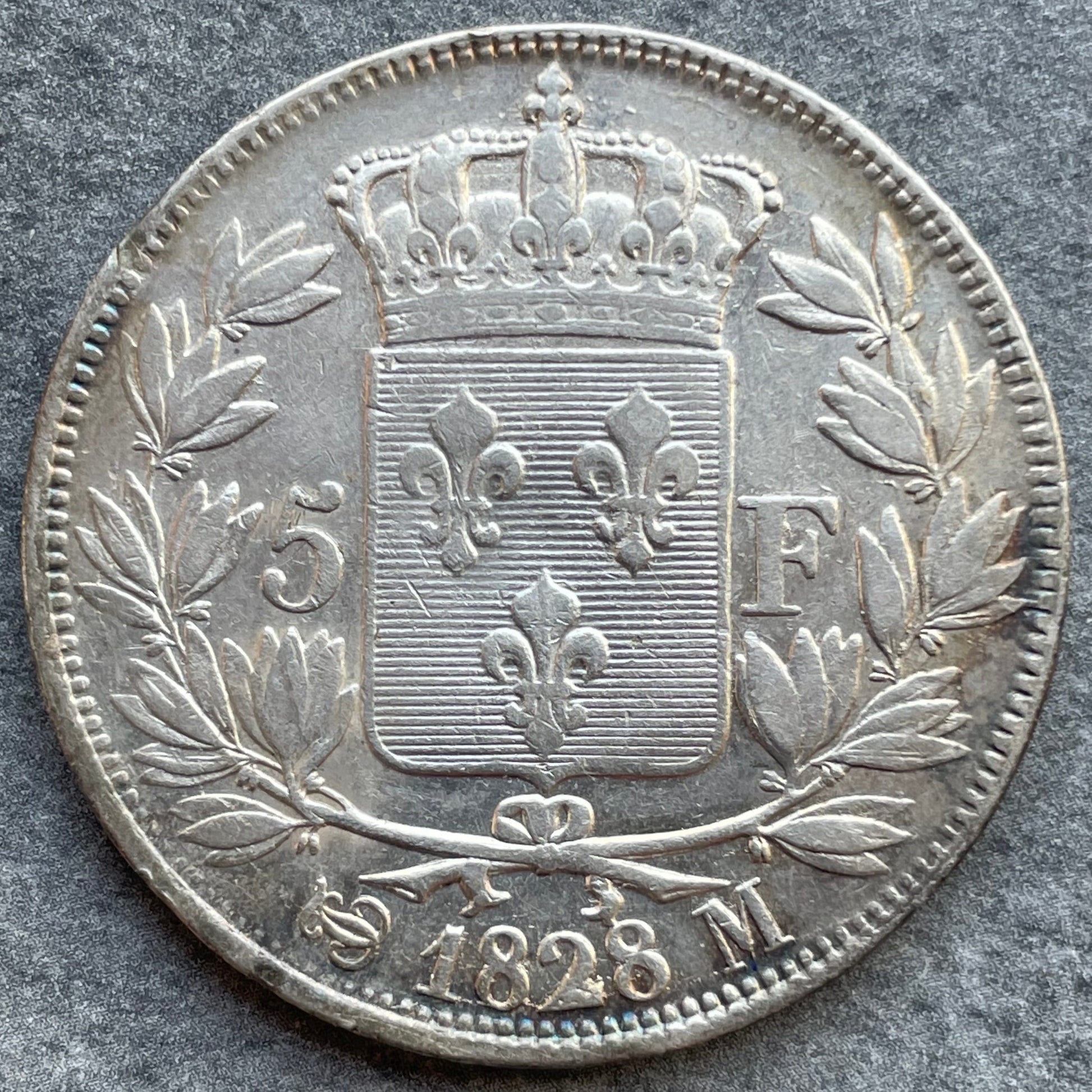 Charles X (1824-1830) 5 Francs Argent 1828 M Toulouse 24.81 gr