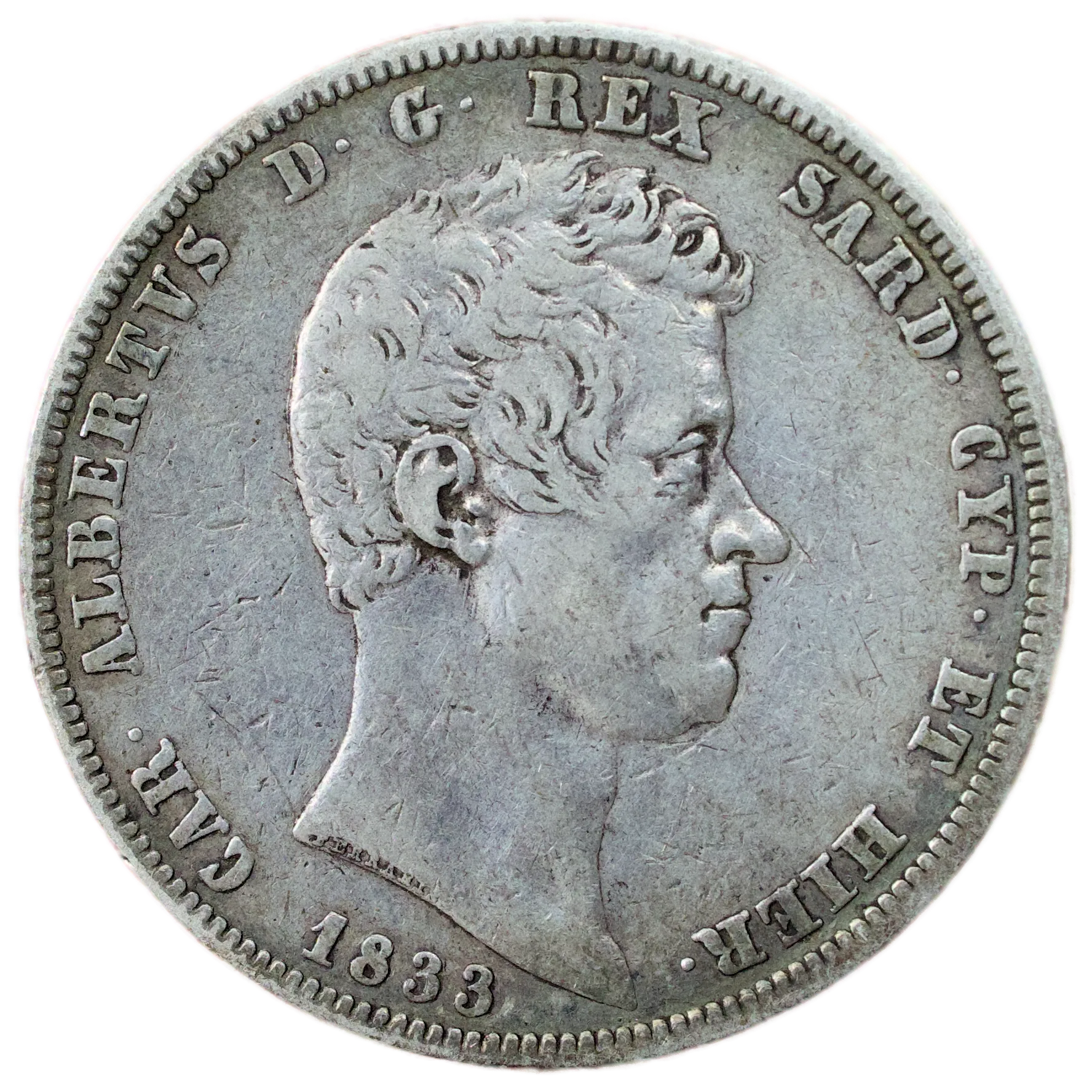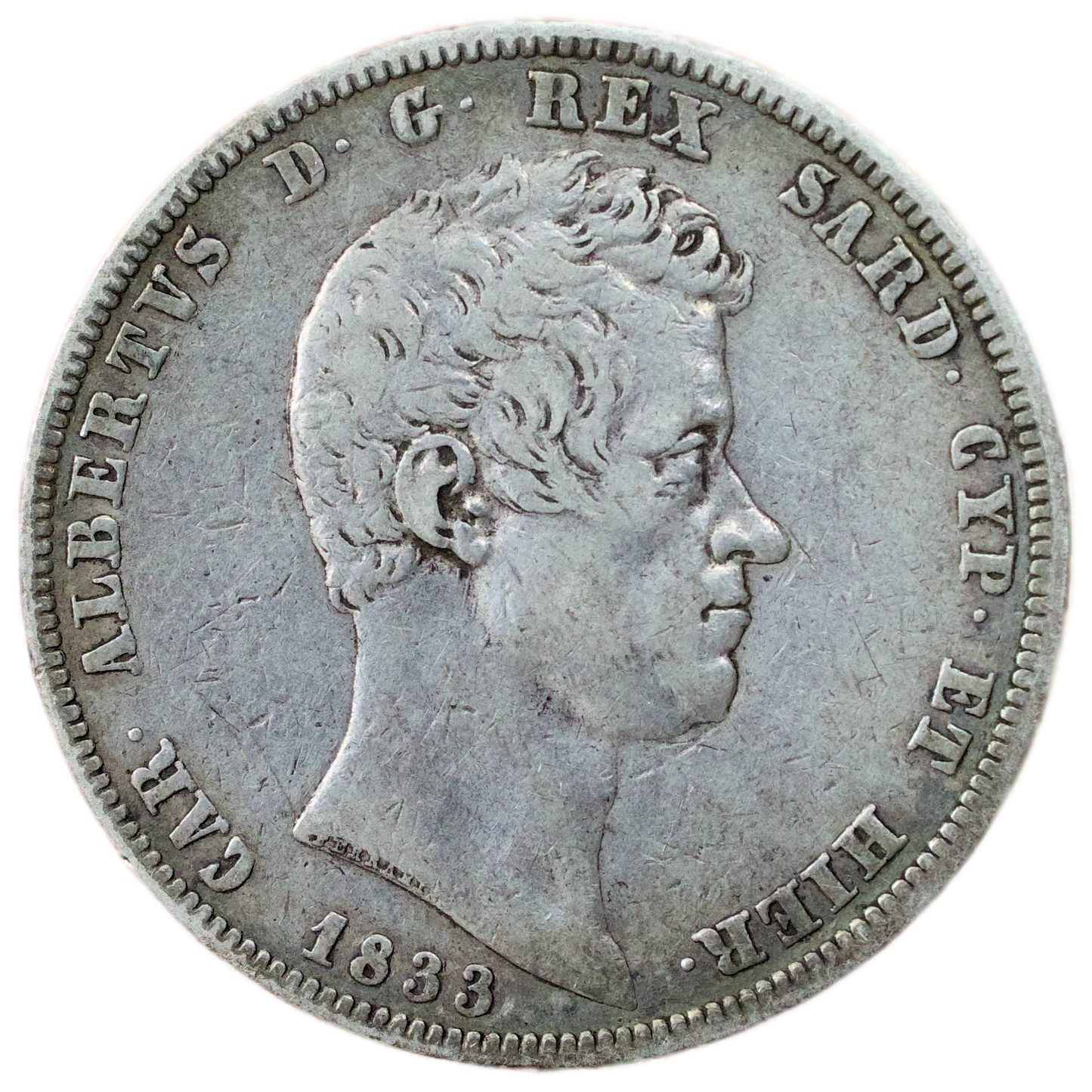 🇮🇹 Italie Sardaigne Charles Albert (1831-1849) 5 Lires 1833 P Ancre argent 24.82 gr