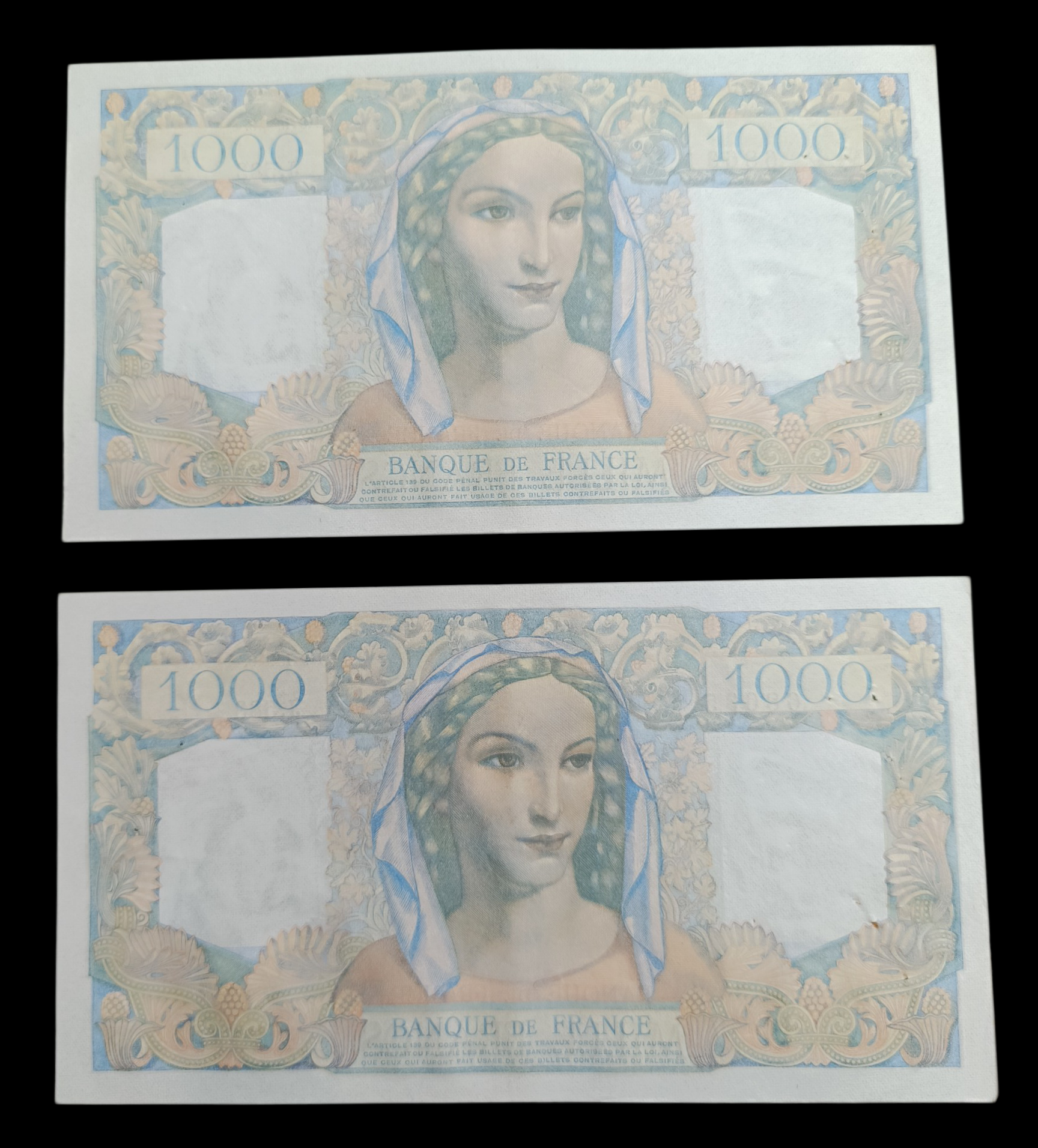 Lot de 2 billets numéros consécutifs Minerve et Hercule 1-9-1949 J.583. État SUP quelques trous d'épinglages.