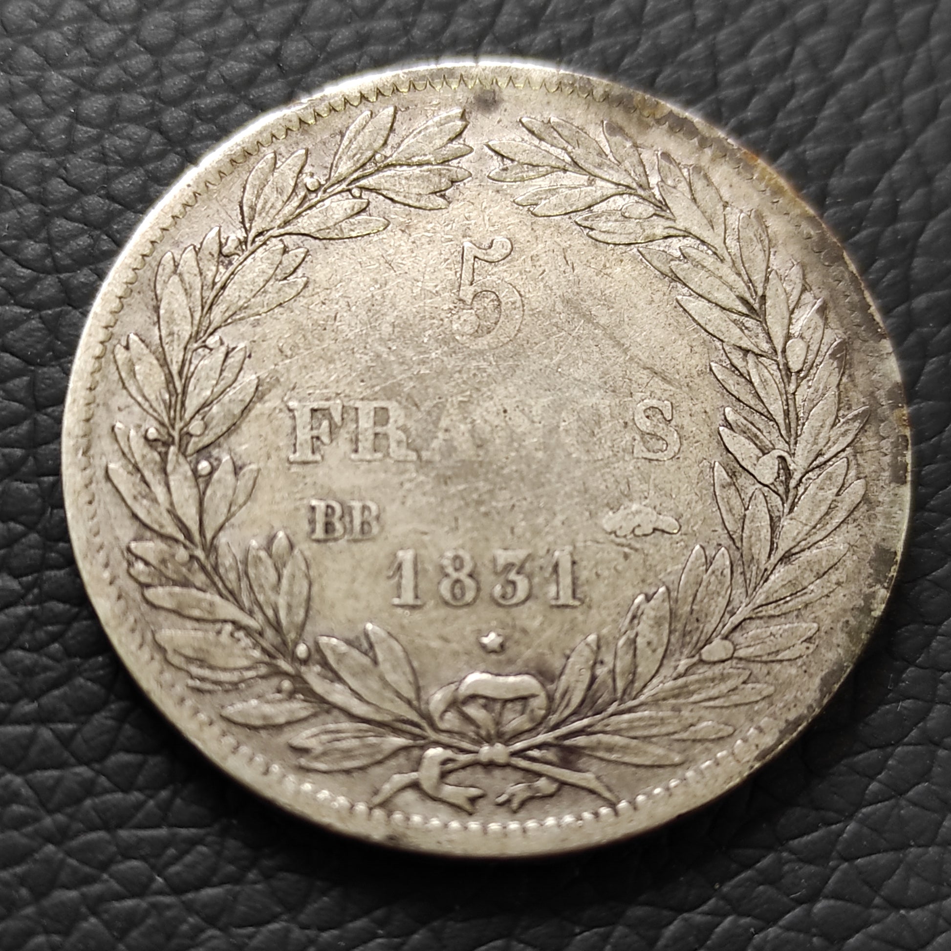 Louis Philippe (1830-1848) 5 Francs 1831 BB Strasbourg. Tranche en creux. Argent. 24.61 gr