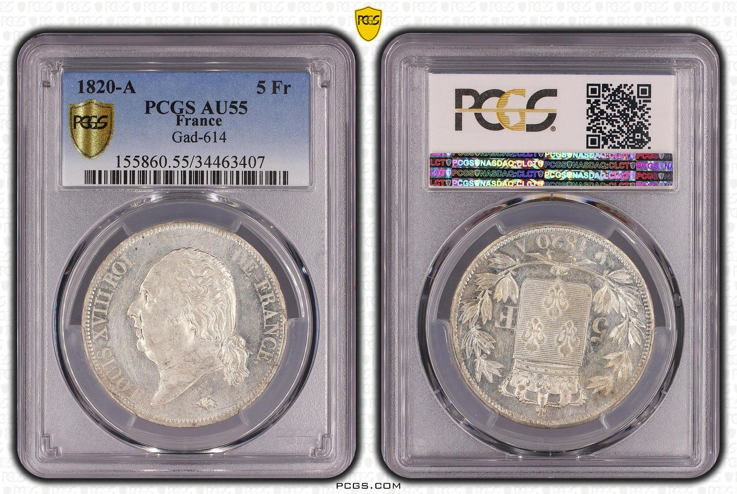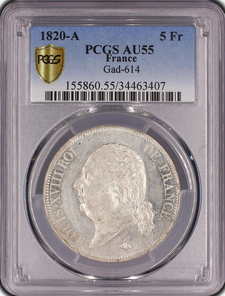 Louis XVIII (1815-1824) 5 francs 1820 A Paris - PCGS AU55 (SUPERBE)