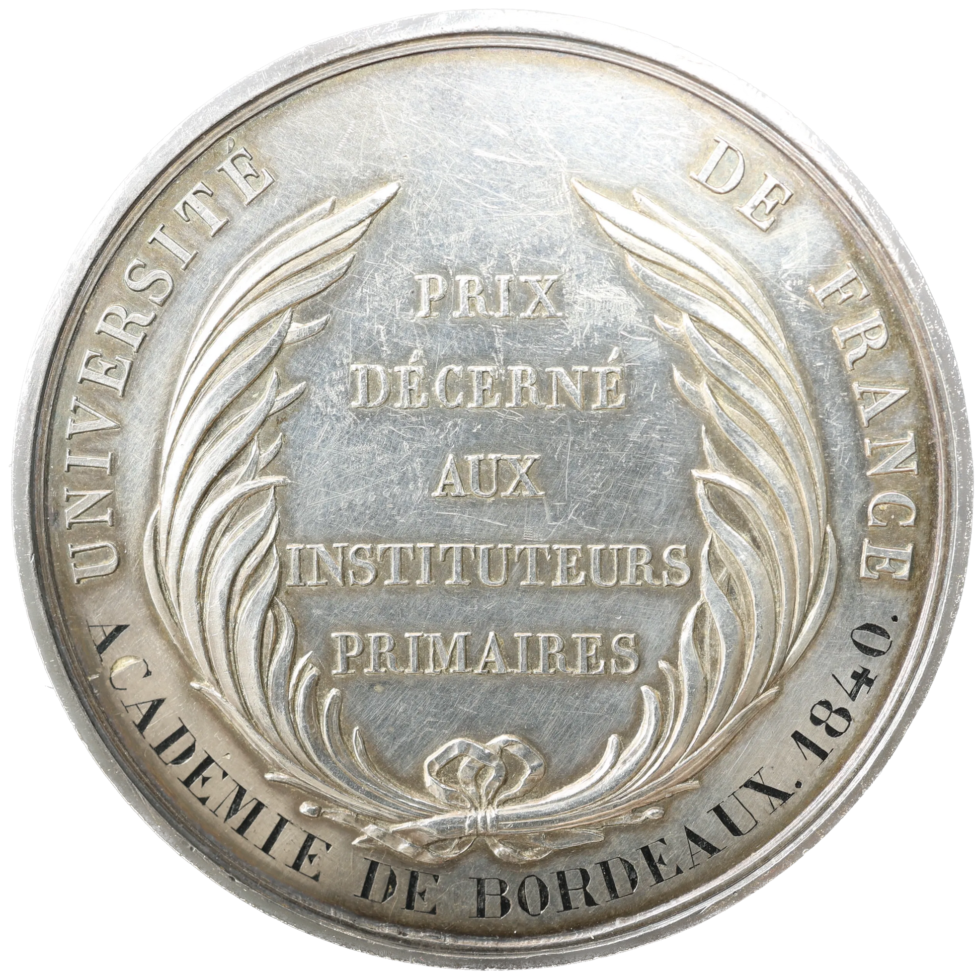 Médaille Louis Philippe I (1830-1848) Université de France - BORDEAUX 1840 Argent 65.31 gr - 51 mm